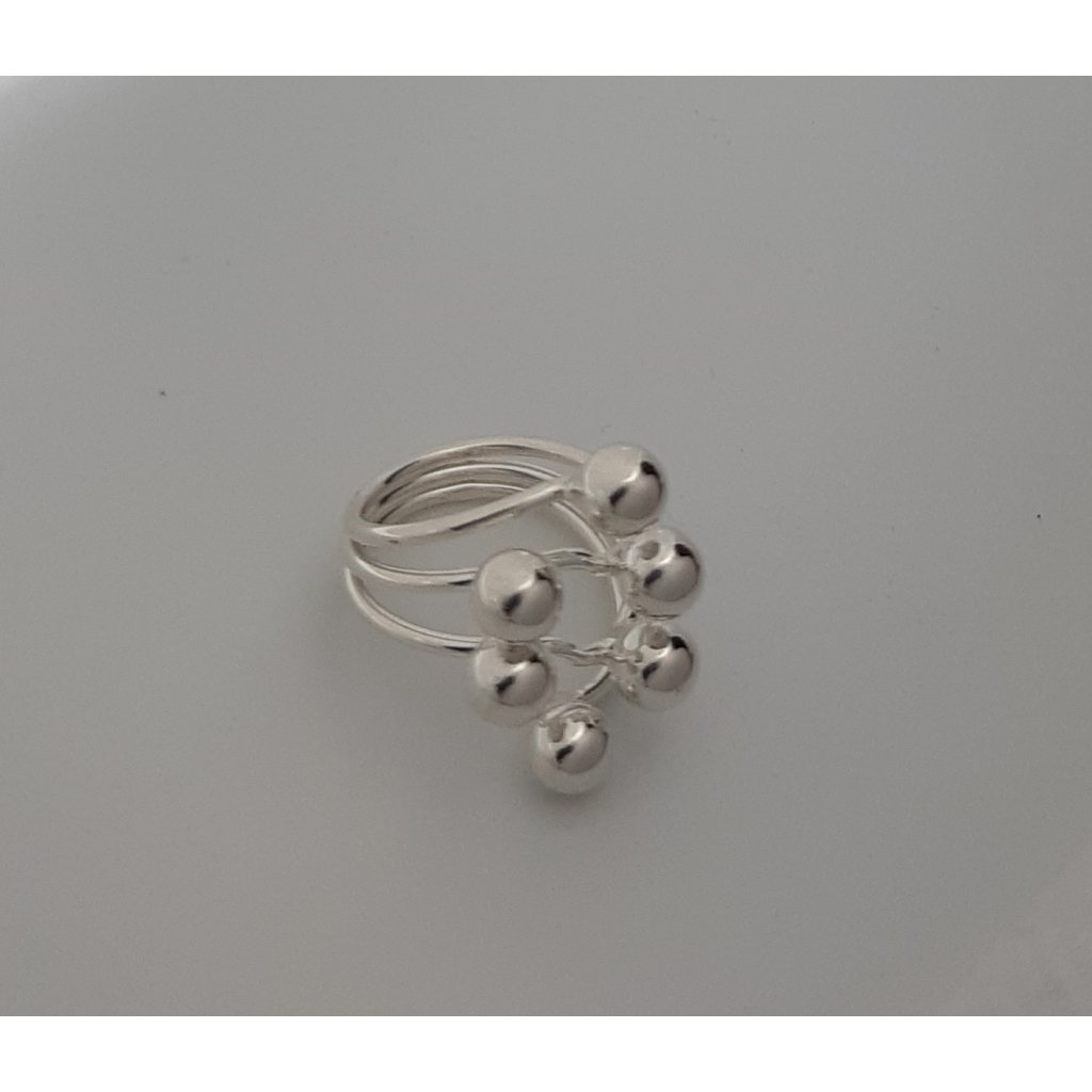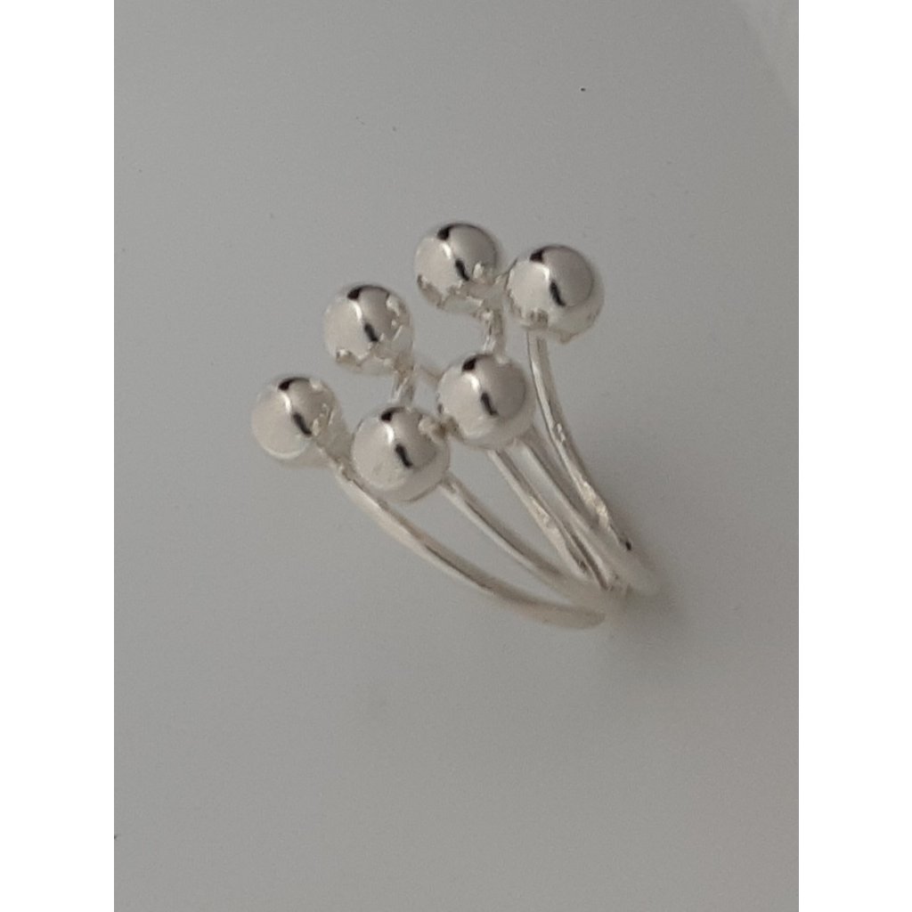 Dámsky strieborný prsteň zaujímavý tvar,s guličkami priemer 6mm - 6ks.Šírka vrchnej časti 22mm, šírka spodnej časti 4,5 mm. Rýdzosť 925/1000. Váha 6,00g