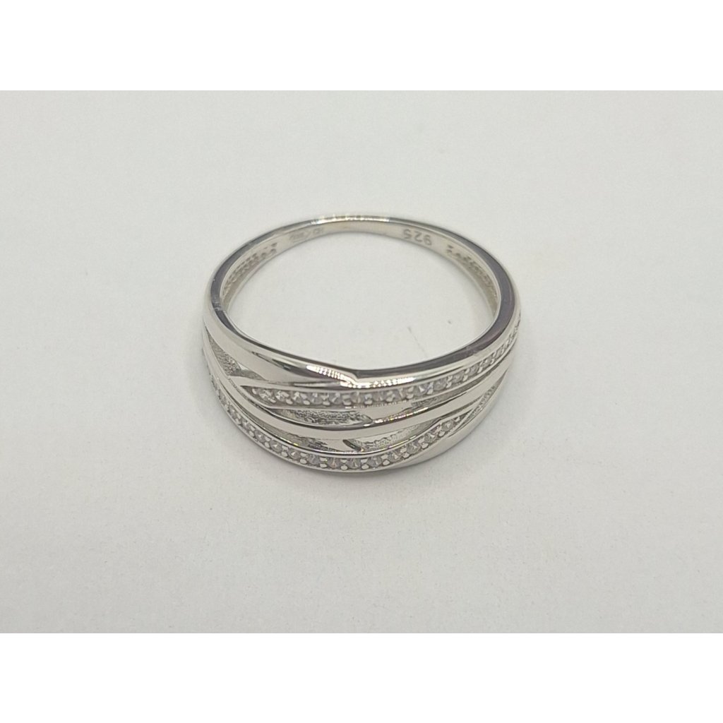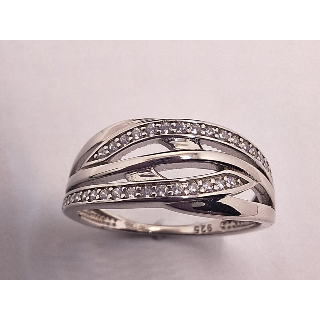Dámsky elegantný strieborný prsteň rodiovany, zdobený s drobnými zirkonami. Rýdzosť 925/1000. Veľkosť 52 váha 1,83g, veľkosť 56 váha 1,94g