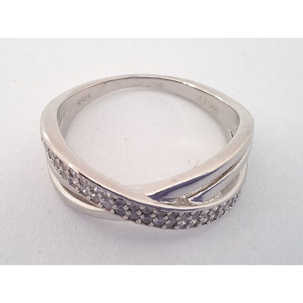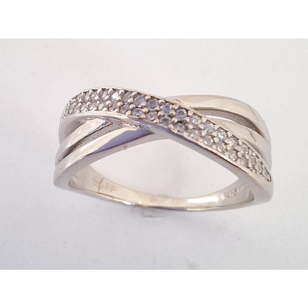 Dámsky elegantný strieborný prsteň rodiovany, zdobený s drobnými zirkonami. Rýdzosť 925/1000. Veľkosť 52 váha 2,87g, veľkosť 56 váha 3,14g, veľkosť 60 váha 3,31g